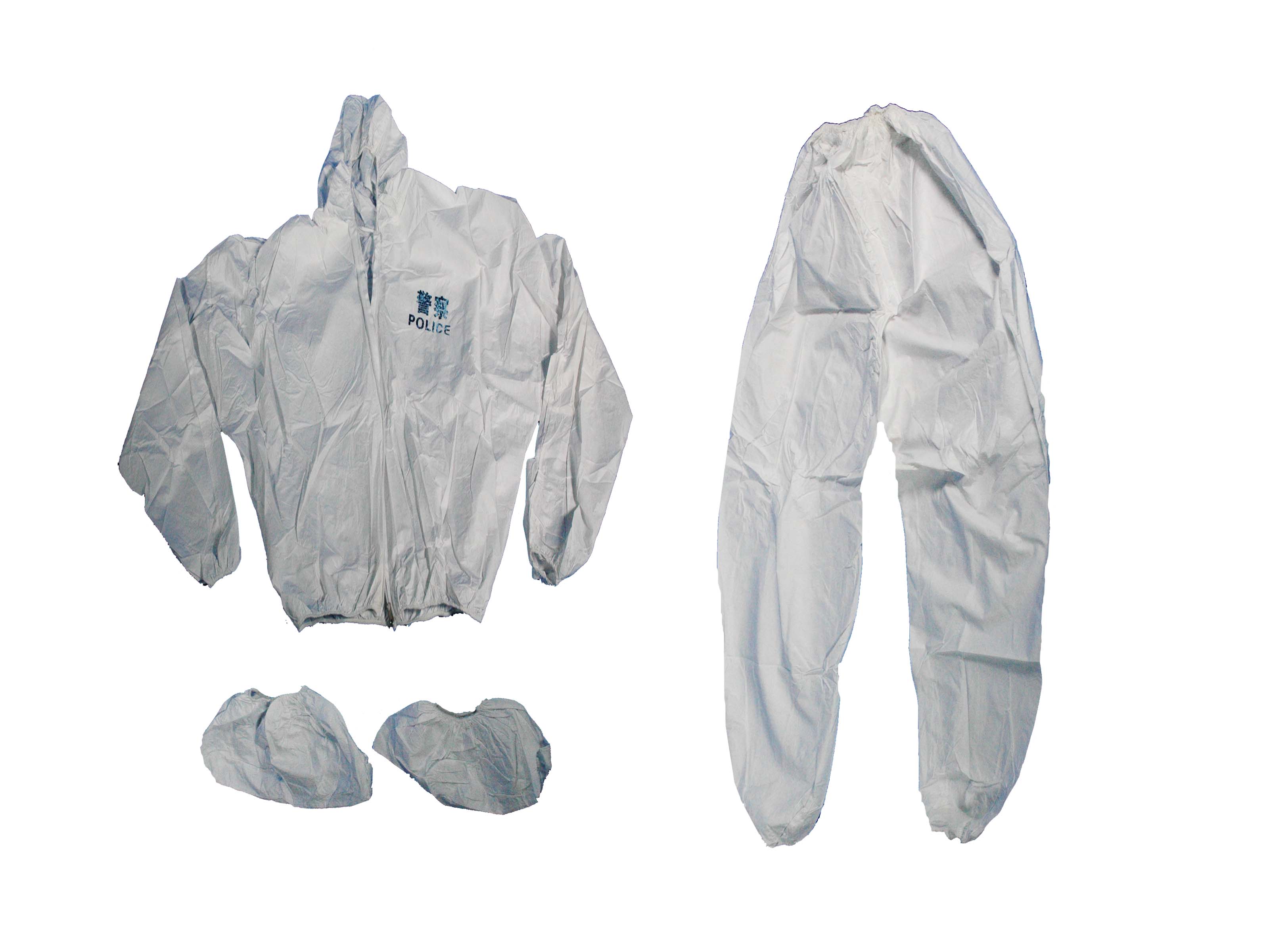 [No.J034]一次性防护服(5件) 用途:为现场勘查人员提供防护。 材质:无纺布,厚实,透气。 组成:带帽上衣、裤子、鞋套、口罩、手套。 样式:分体式。 颜色:白色。 规格:5件/套 价格:60元/套 返回上页